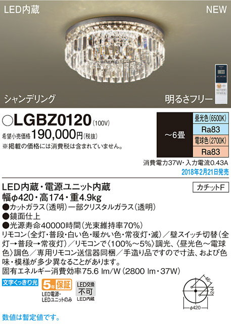 LEDシャンデリア(シャンデリング) *LGBZ0120(6畳用)(調色)(カチットF)パナソニックPanasonic