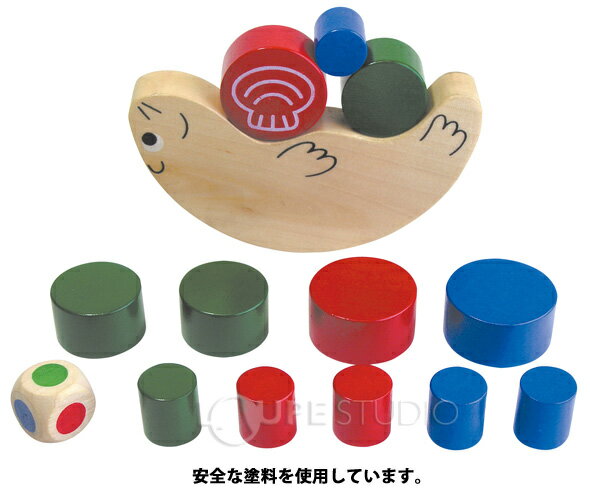 商品サイズ:46×40×11mmクジラバランス ゲーム バランスゲーム 【木製玩具 木のおもちゃ 知育玩具 3歳 4歳 5歳 6歳 子供 幼児】商品番号:ATC-04046価格:372(税別)サイコロの色にしたがって、積み木をクジラの背中にのせよう!商品サイズ:サイコロ/15×15×15mmバランスゲーム 木製 木のおもちゃ 木製玩具 知育玩具【3歳 4歳 5歳 6歳】商品番号:ATC-00327価格:377(税別)サイコロを振って出た色と同じ色のブロックを、半球の土台に積んでいくゲームです。