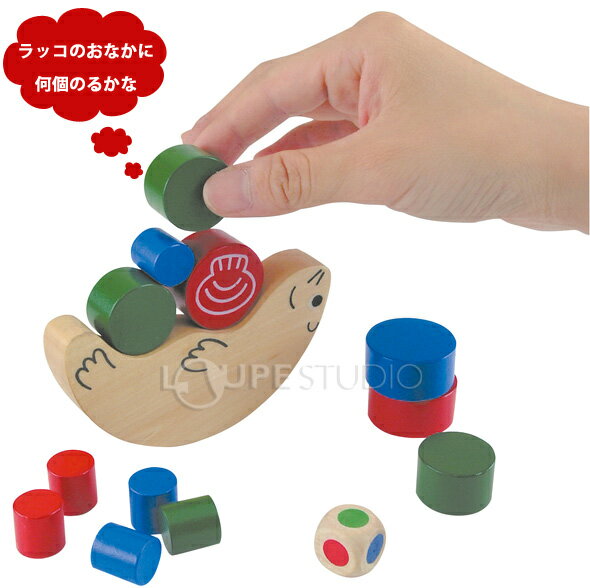 商品サイズ:ラッコ/100×55×15mm 円柱大×3/φ30×15mm 円柱中×3/φ25×15mm 円柱小×6/φ15×15mm サイコロ/15×15×15mmセット内容:ラッコ×1、青×3、赤×3、緑×3、サイコロ×1かわいいラッコにブロックを積んでいくバランスゲーム。